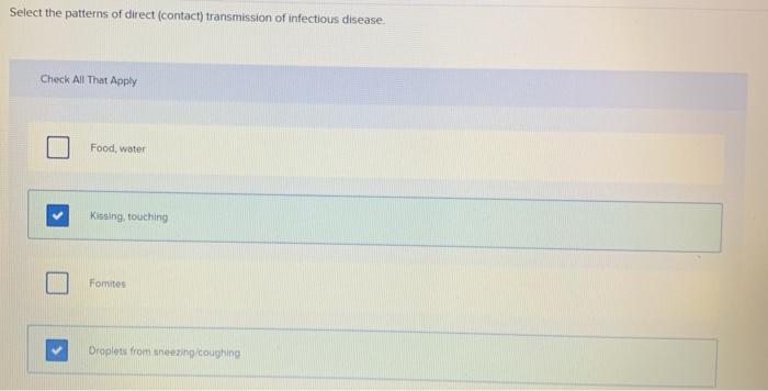 Solved Select The Patterns Of Direct Contact Transmission Chegg Com